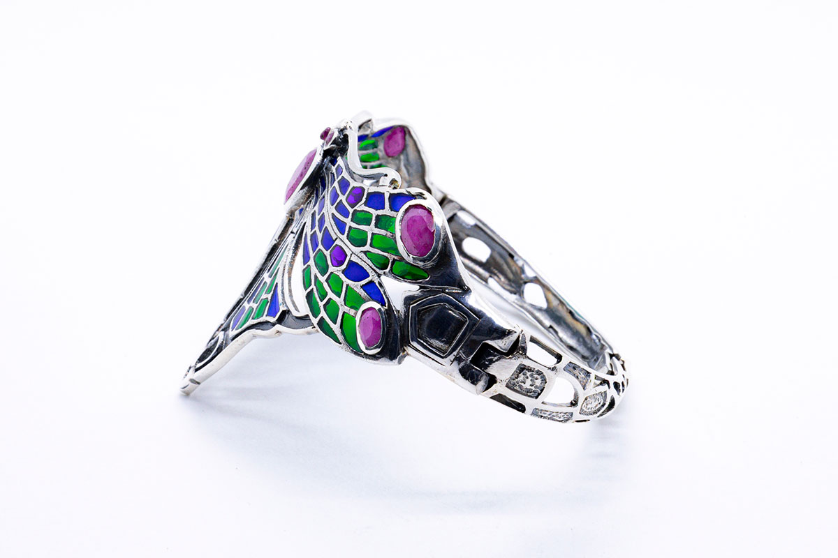 Pulsera con iguana en plata esmeralda, rubí y marcasita