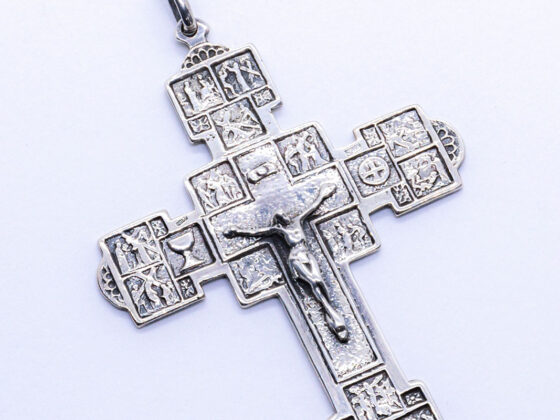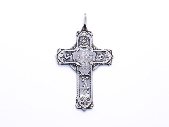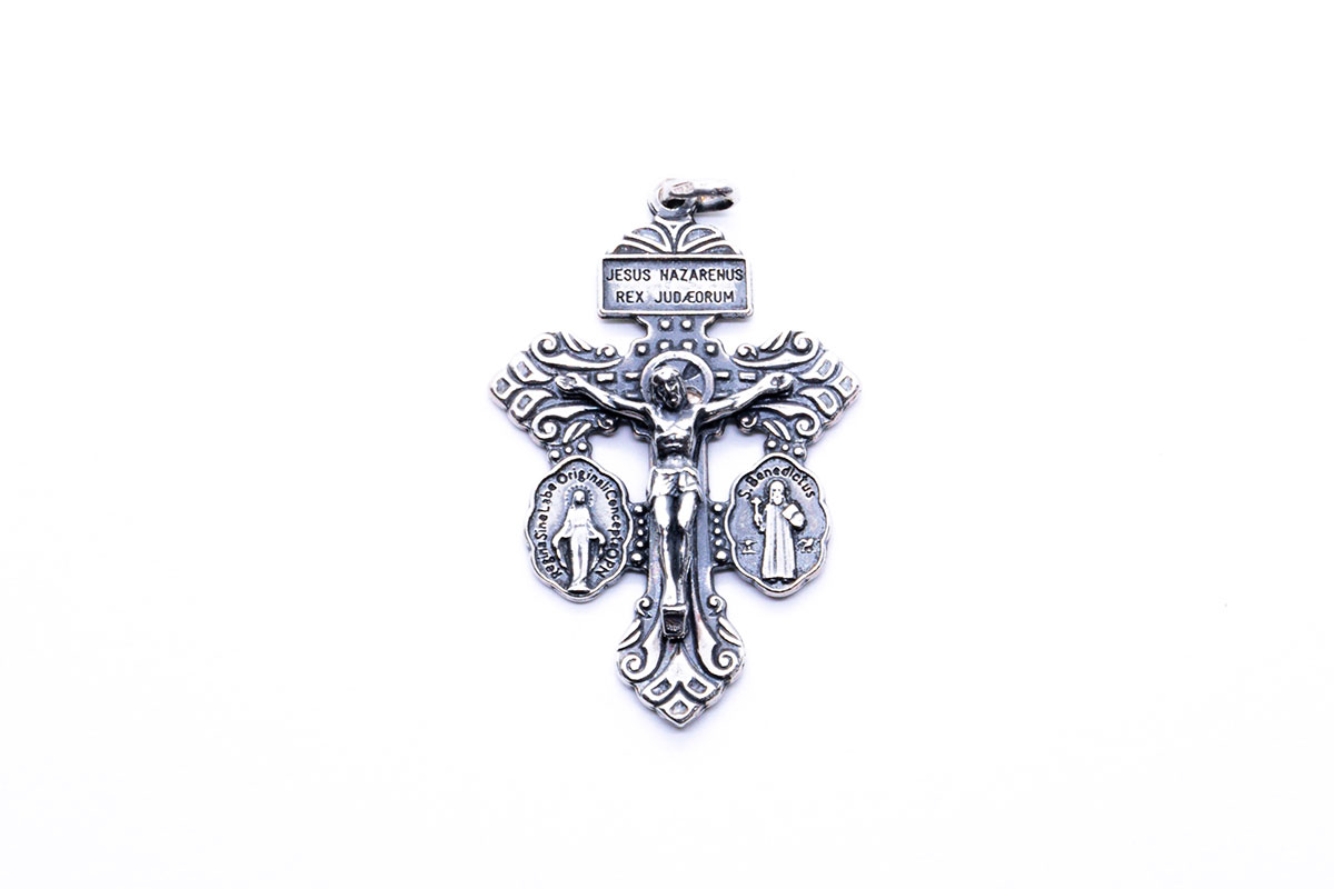 Este formato —crucifijo con medallas benedictinas integradas— es típico de la cruz-medalla de San Benito, muy difundida desde finales del siglo XIX.