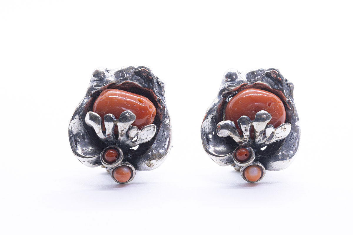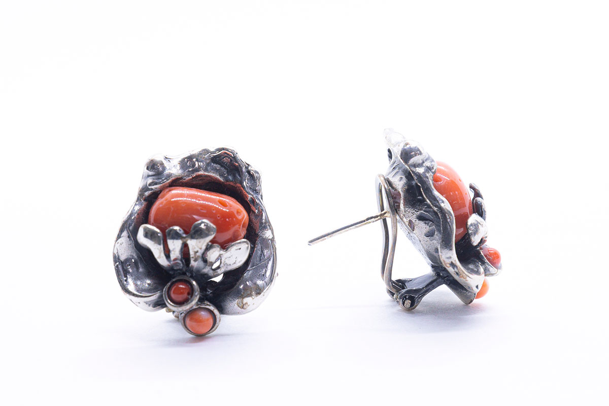 Pendientes realizados en plata 1ª ley con Coral del Mediterraneo y cierre Omega