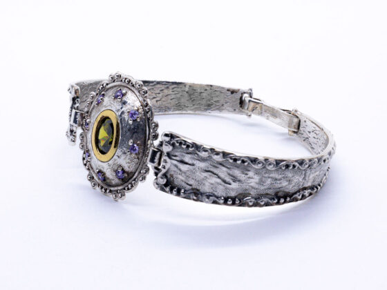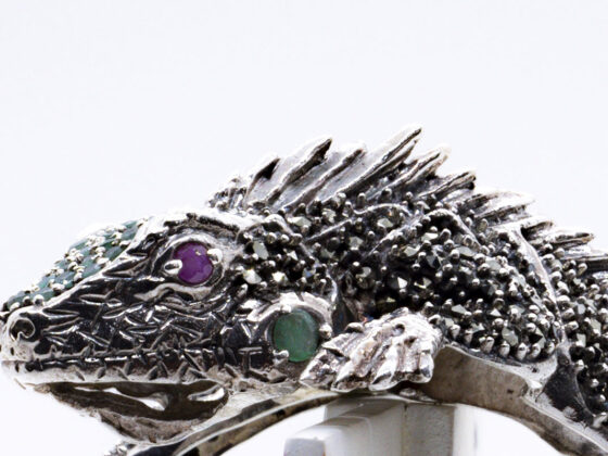 Pulsera con iguana en plata esmeralda, rubí y marcasita