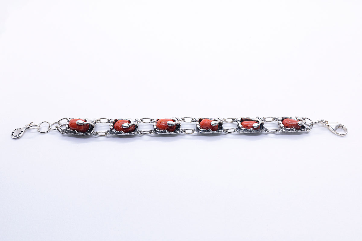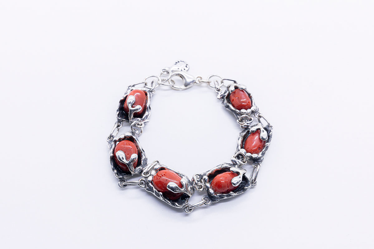 Pulsera realizada en plata de ley con coral del Mediterráneo